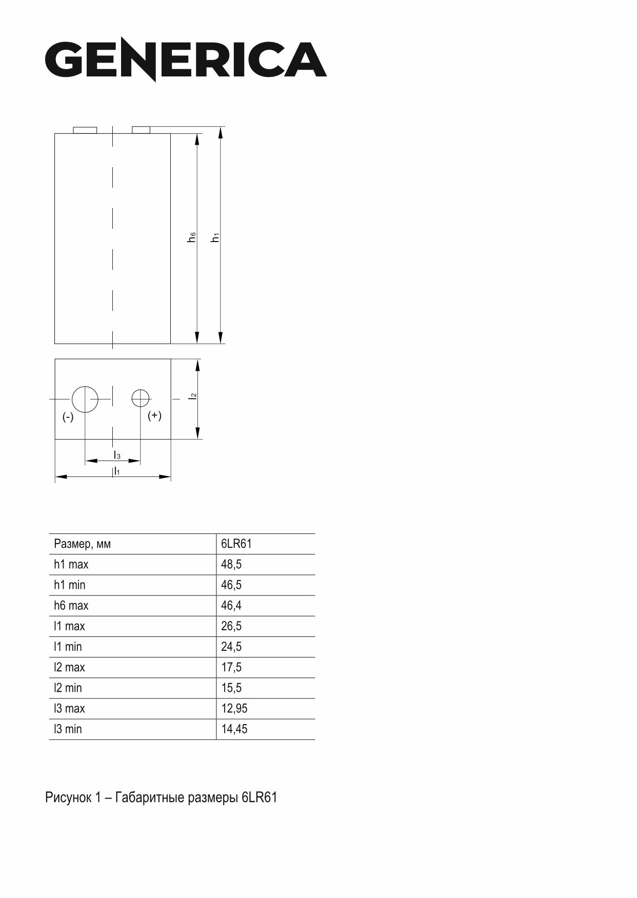| Обозначение по стандарту МЭК - IEC | 6LR61 |