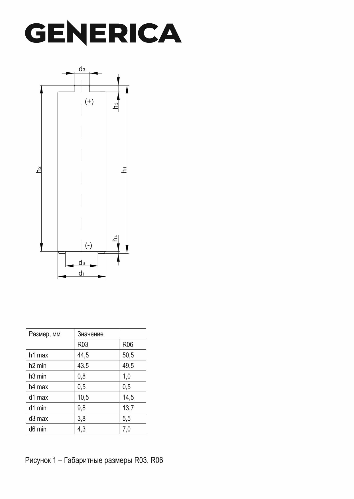 Батарейки солевые мизинчиковые GENERICA AAA / R03, 4 шт. в пленке. · Защищены от протечек, не повредят устройство; · Безопасны, не содержат вредных веществ: ртуть HG, кадмий CD, свинец PB; · Температуры эксплуатации от 0 °С до 35 °С; · Срок хранения 3 года. Солевые батарейки гораздо доступнее щелочных. Они предназначены для устройств с небольшим энергопотреблением: настенных часов, пультов дистанционного управления, радиоприёмников, счётчиков газа и воды и других подобных приборов. Соответствуют ГОСТ 12.2.007.12, ГОСТ 24721, ГОСТ Р МЭК 60086-1 (IEC 60086-1), ГОСТ 2583-92.