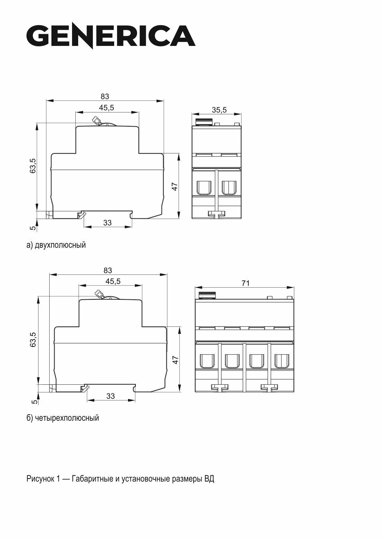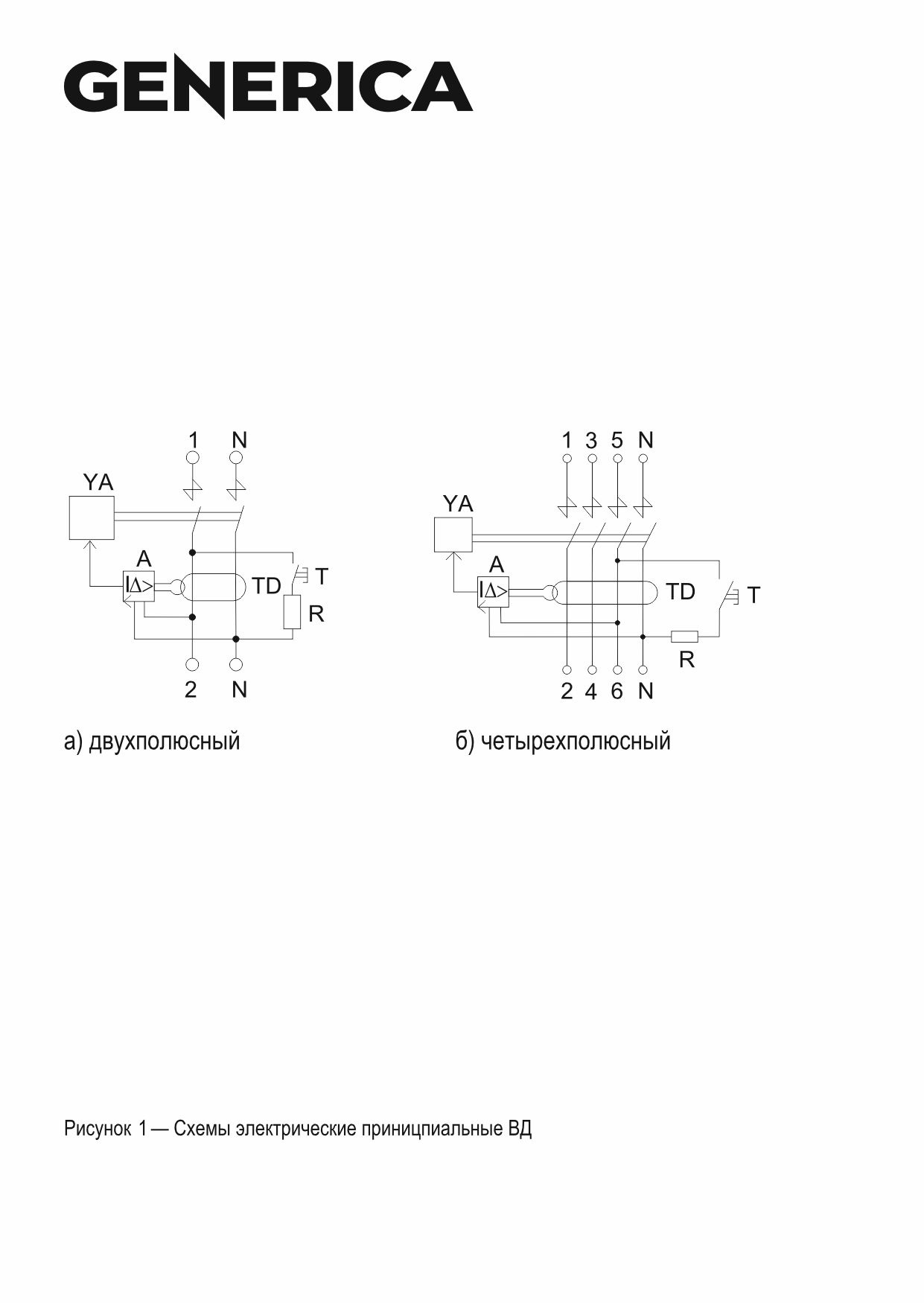Быстродействующий защитный выключатель ВД1-63 (УЗО) GENERICA - устройство электронного типа, зависящее от напряжения и реагирующее на дифференциальный ток, без встроенной защиты от сверхтоков. Предназначен для защиты человека от поражения электрическим током.