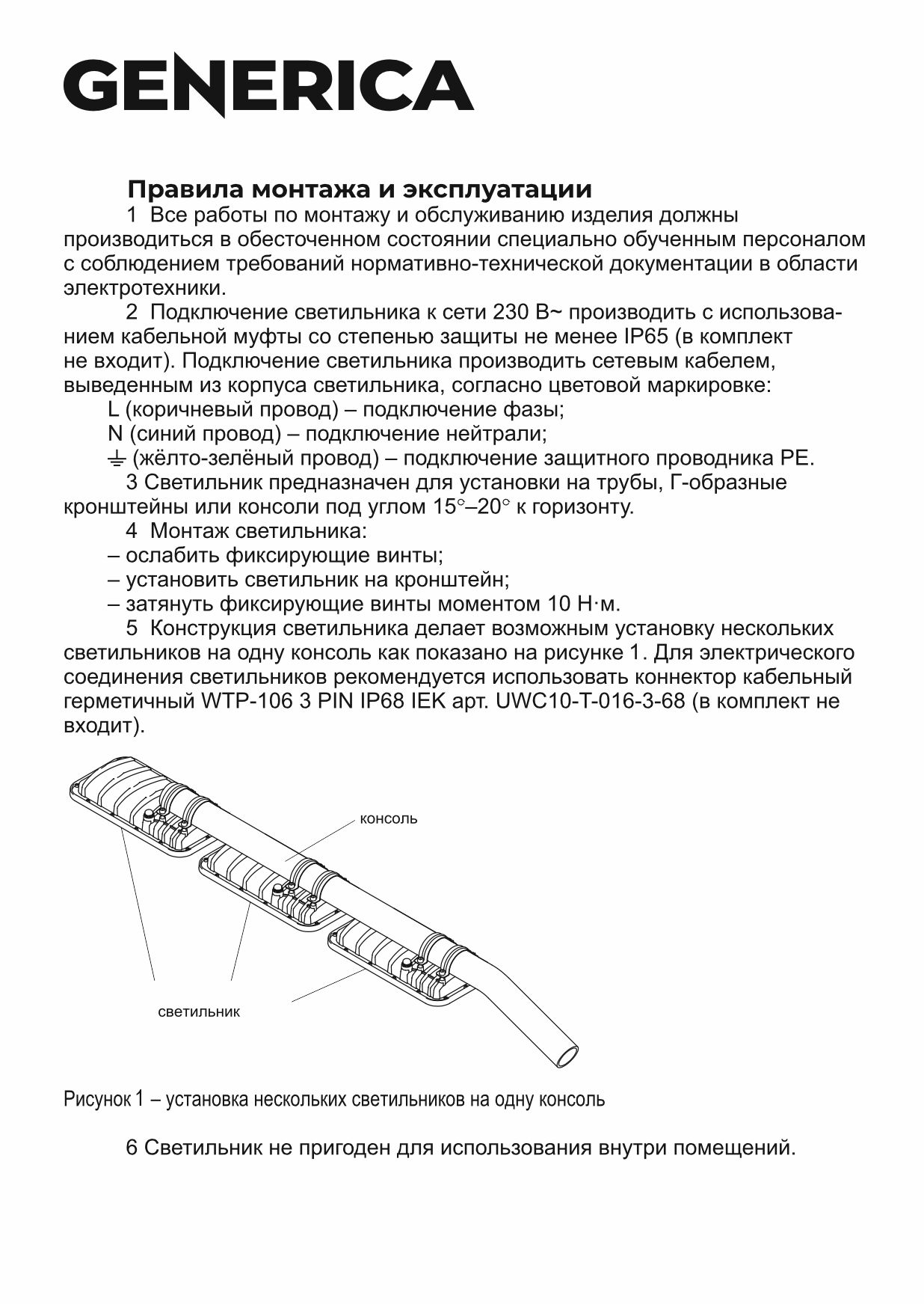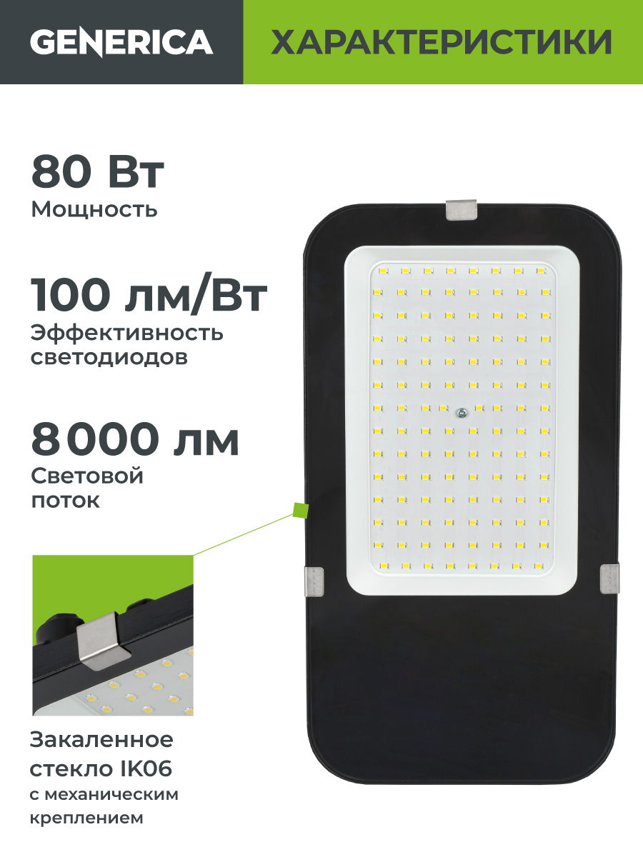 Светильник светодиодный консольный ДКУ 4002 80Д 5000К IP65 GENERICA